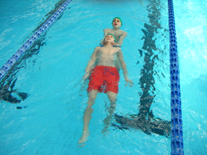 Due immagini dell'attività svolta in piscina.